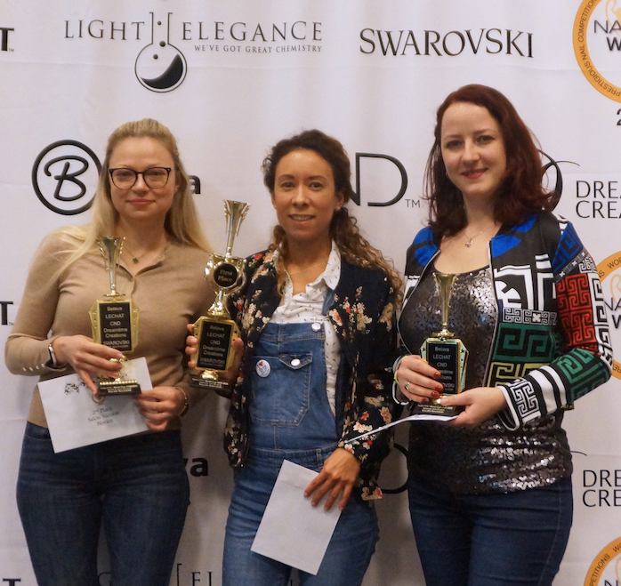 Différentes épreuves de nail art et de techniques avaient lieu, tels que : 3D nail art, chrome-stamping, extreme stilleto, etc. Les candidat-e-s étaient répartis en 2 catégories : Novices et confirmés. Stéphanie a participé et a remporté l’épreuve Salon Success, qui équivaut au Pink and White de la compétition de Nail Art France qui se déroulera en septembre 2020. Il s’agissait de réaliser une French style salon, en reverse avec chablons, en 1h30 et de vernir l’autre main avec un vernis rouge. Le jury etait composé de grandes championnes comme Jewel Cunnigam, Carla Jones, Allie Baker, Guin Deadman et Hemi PARK